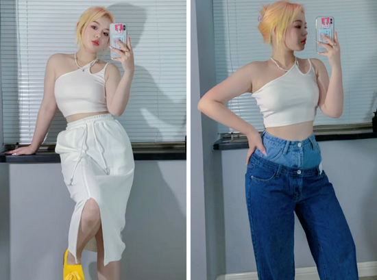 胯大腿粗在这个时候反而成了你的优势,你看十个ABG风辣妹里,9个都是这种身材,人家根本不追求纯瘦,都给我放开胆子去穿。