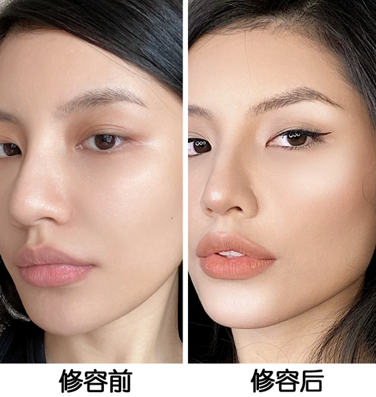 然后到修容,因为亚洲人的脸部骨骼比较扁平,要想强调脸部的骨骼感,高光和修容的位置得打对。